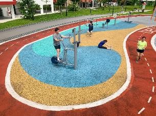 The improved selection of fitness equipment can be used to work different muscle groups. One example is this project at Jurong Spring Playfield that was completed under the Neighbourhood Renewal Programme (NRP) in tandem with SportSG’s Sport-in-Precinct Programme (SIP).