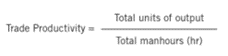2Trade productivity is defined as the amount of physical output per man hour, at the trade level. A worker is deemed to be more productive if he produces more output within an hour. The indicator is calculated as follows: Source: BCA (https://www1.bca.gov.sg/docs/default-source/docs-corp-news-and-publications/publications/for-industry/builders_guide_productivity.pdf)