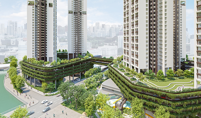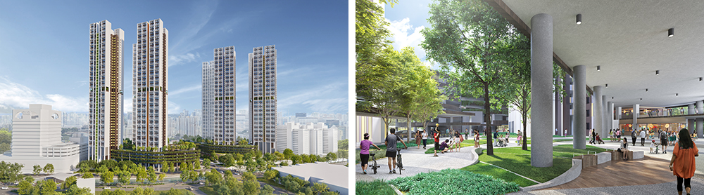 Perspective of River Peaks I and II, the first BTO projects under the new Prime Location Public Housing model