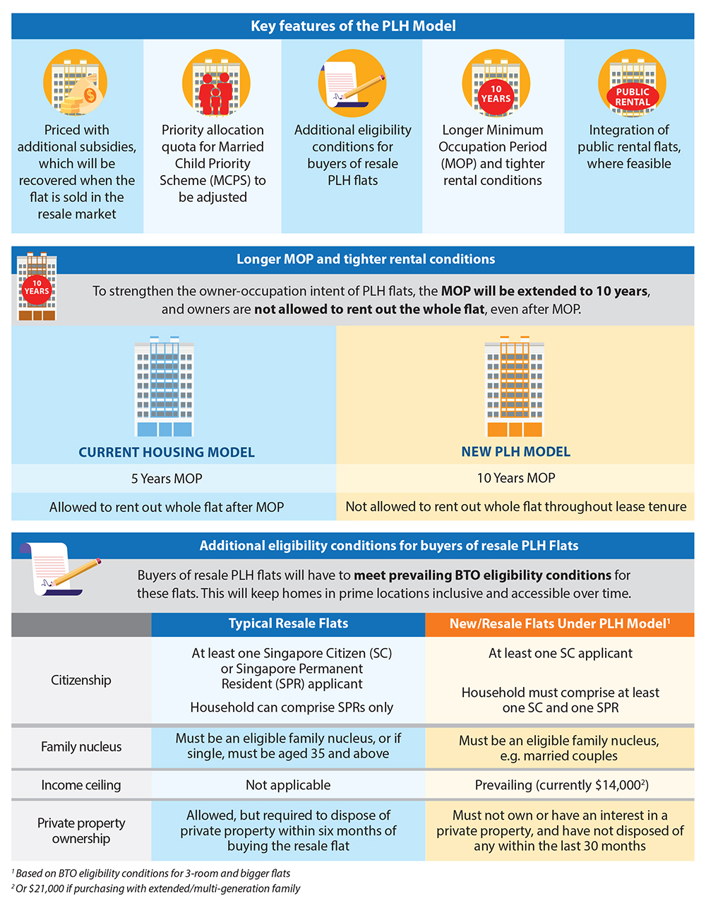 To ensure that the estates remain accessible to a broad group of subsequent flat buyers over time — beyond the initial purchase — tighter resale and rental conditions have been applied to PLH flats. For example, buyers of resale PLH flats have to meet the prevailing eligibility conditions for the purchase of a flat directly from HDB. A longer Minimum Occupation Period (MOP) of 10 years aims to safeguard these flats for Singaporeans with genuine housing needs and strengthen the owner-occupation intent. In addition, renting out of the whole PLH flat will not be allowed, even after MOP.