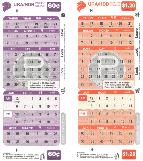 The whole day parking coupon and monthly parking coupon are discontinued from 1 January 2022. Please use the Parking.sg app to pay for parking at all coupon car parks. Parking.sg caps the parking charges at $12 (for non-Central Area) and $20 (for Central Area) per day for cars that are parked for the whole day (7:00am to 7:00am on the following day for car parks with Night Parking Scheme, and 7:00am to 10:30pm for car parks without Night Parking Scheme), and $5 per night (10:30pm to 7:00am on the following day). These caps do not apply to car parks with peak hour parking charges.