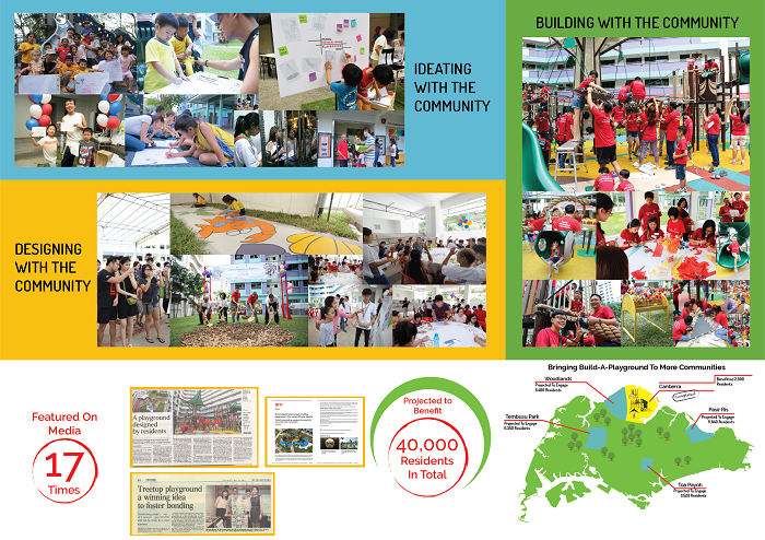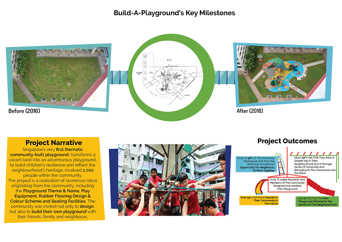 The idea of a community-built playground was the other winning idea arising from the HDB Build-a-thon challenge in 2014. HDB, together with PA/ Grassroots and partnering schools, engaged Canberra residents to realise Singapore’s first community-built playground.