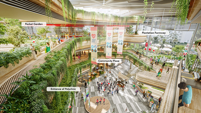 Within the precinct, residents can relax in tranquil pocket gardens and courtyards, and reconnect with nature through biophilic design that harnesses nature’s intrinsic benefits. There will also be spaces that provide opportunities, such as the Plantation Farmway in Tengah, as these can enhance mental well-being and promote social ties among neighbours.