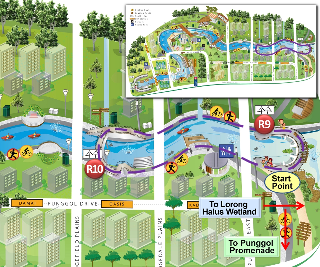 The eastern part of My Waterway@Punggol boasts a rural landscape theme. With green and rustic tones, it draws reference to Punggol’s charm as a fishing village in the past. Landmarks along the rustic zone include the Sunrise Bridge. This horseshoe-inspired footbridge presents an ideal spot for residents to watch the sunrise.