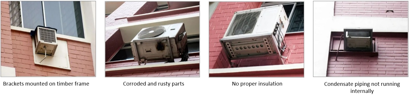 Do check with the air-conditioner serviceman if there is a need to replace a corroded/ rusty air-conditioner unit. Regular maintenance of the air-conditioner and the supporting frame helps prevent the risk of it getting dislodged, thereby ensuring public safety.
