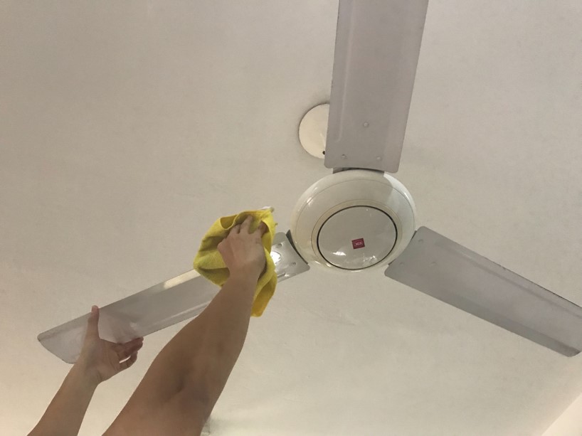 You can quickly remove thin layers of dust by cleaning the fan blades with a vacuum cleaner and brush attachment.