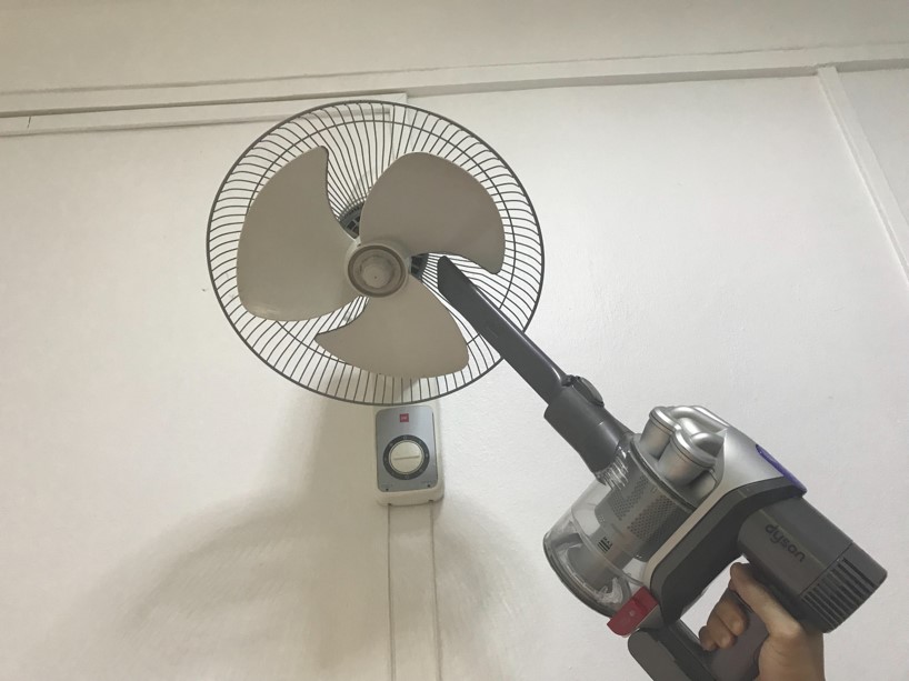 You can quickly remove thin layers of dust by cleaning the fan blades with a vacuum cleaner and brush attachment.